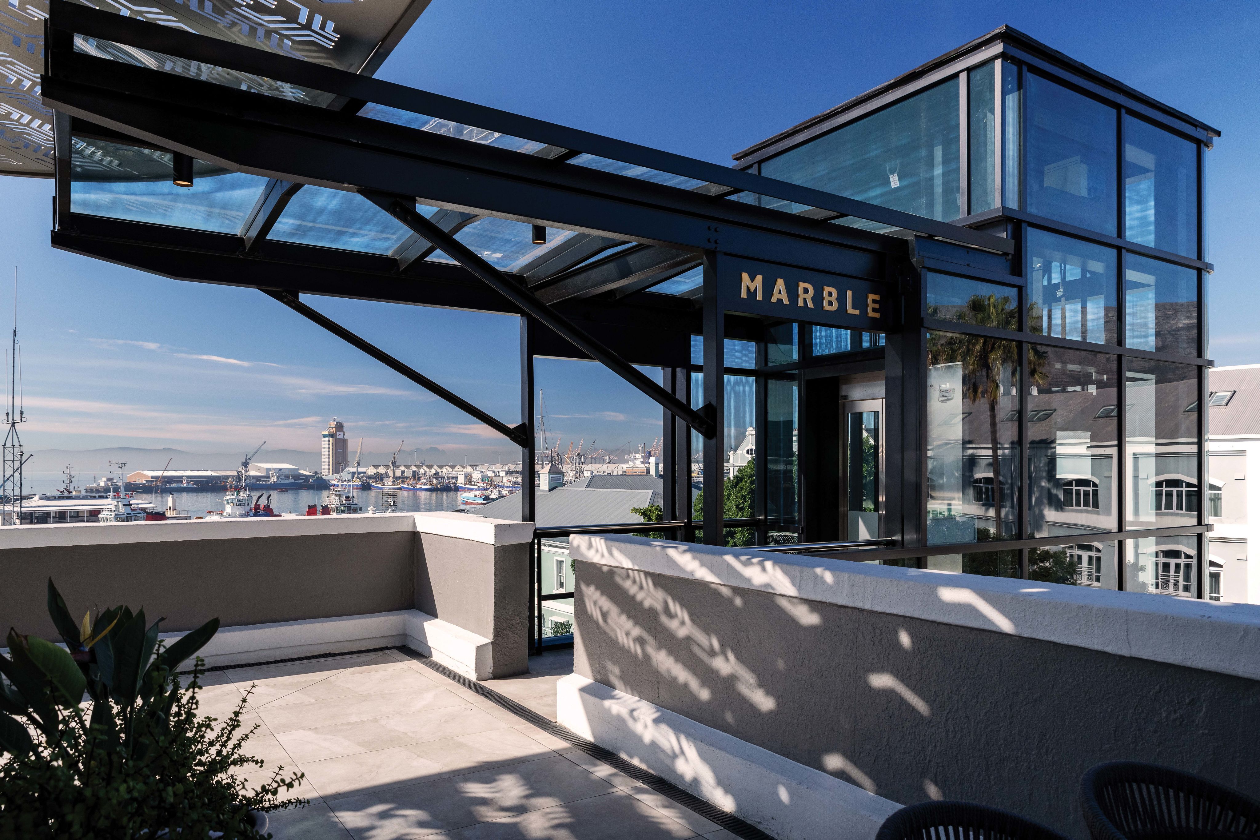A new glazed scenic lift became a key design feature, providing access to upper floors while externalising the building’s activities and offering spectacular views of the city and greater V&A Waterfront. Curved glass corners emphasise the contrast of the new additions, while a bespoke glazed pavilion maximises the panoramic views and completes the refreshed approach to the UCB and adjacent spaces .