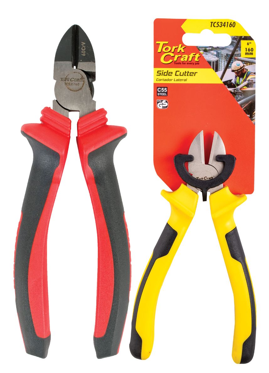 ● Side Diagonal Cutter (160mm): Flush cuts on soft materials and plastics – includes opening spring.