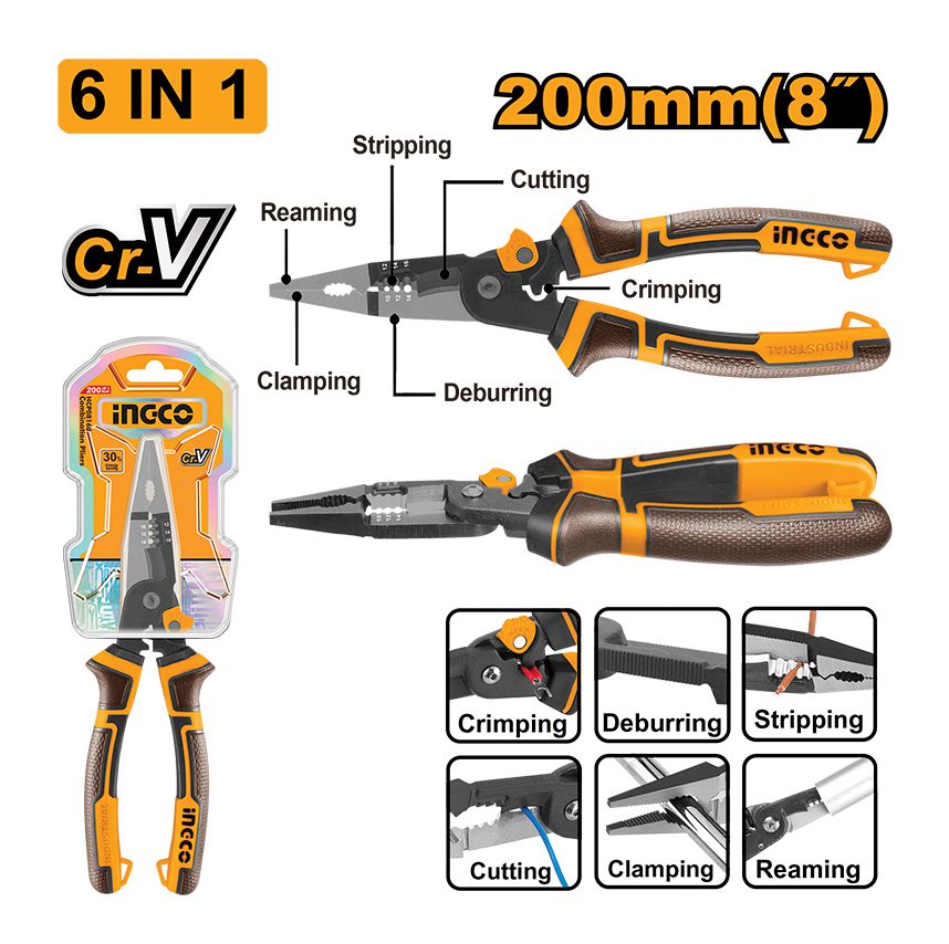 INGCO 6-in-1 multi-function long nose pliers