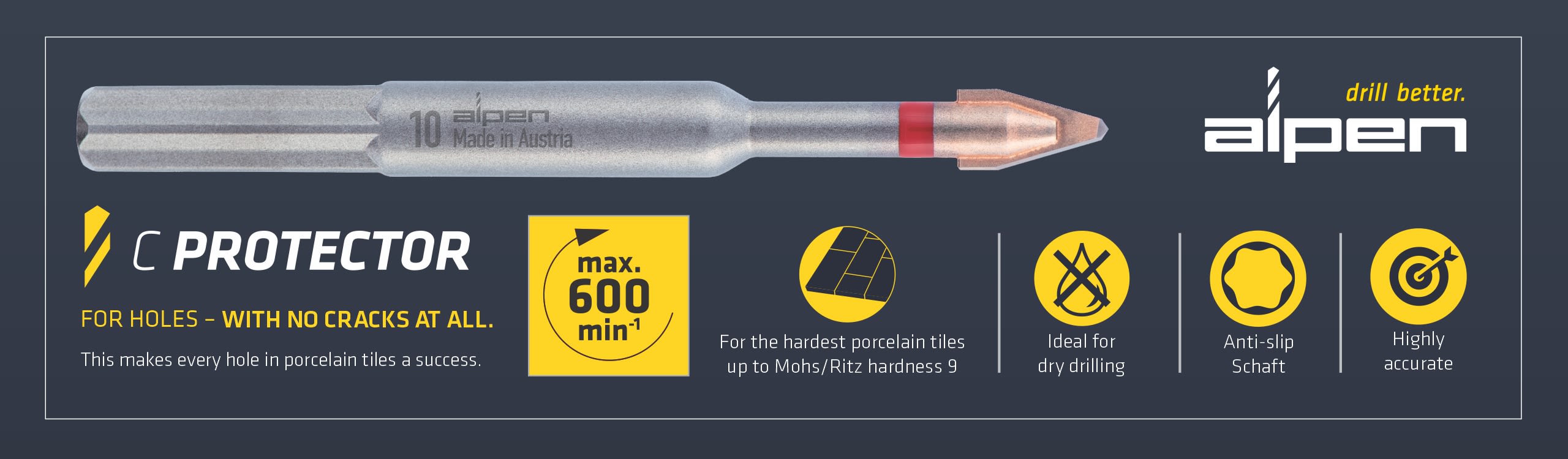 Retailers Guide to Tiling Tools: Alpen’s C PROTECTOR Porcelain Drill Bit