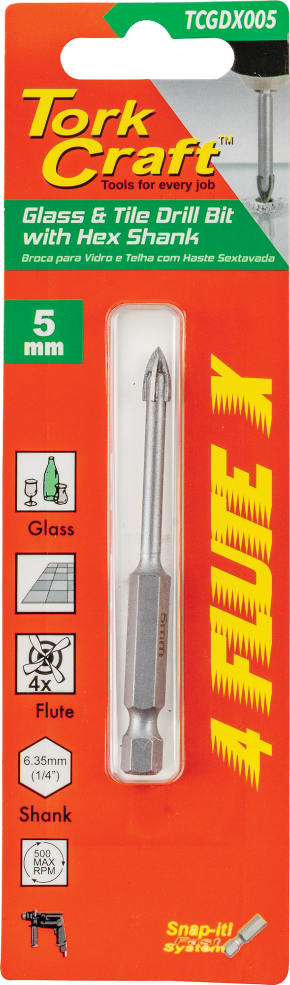 - Features a 4-flute design and hex shank for superior grip.