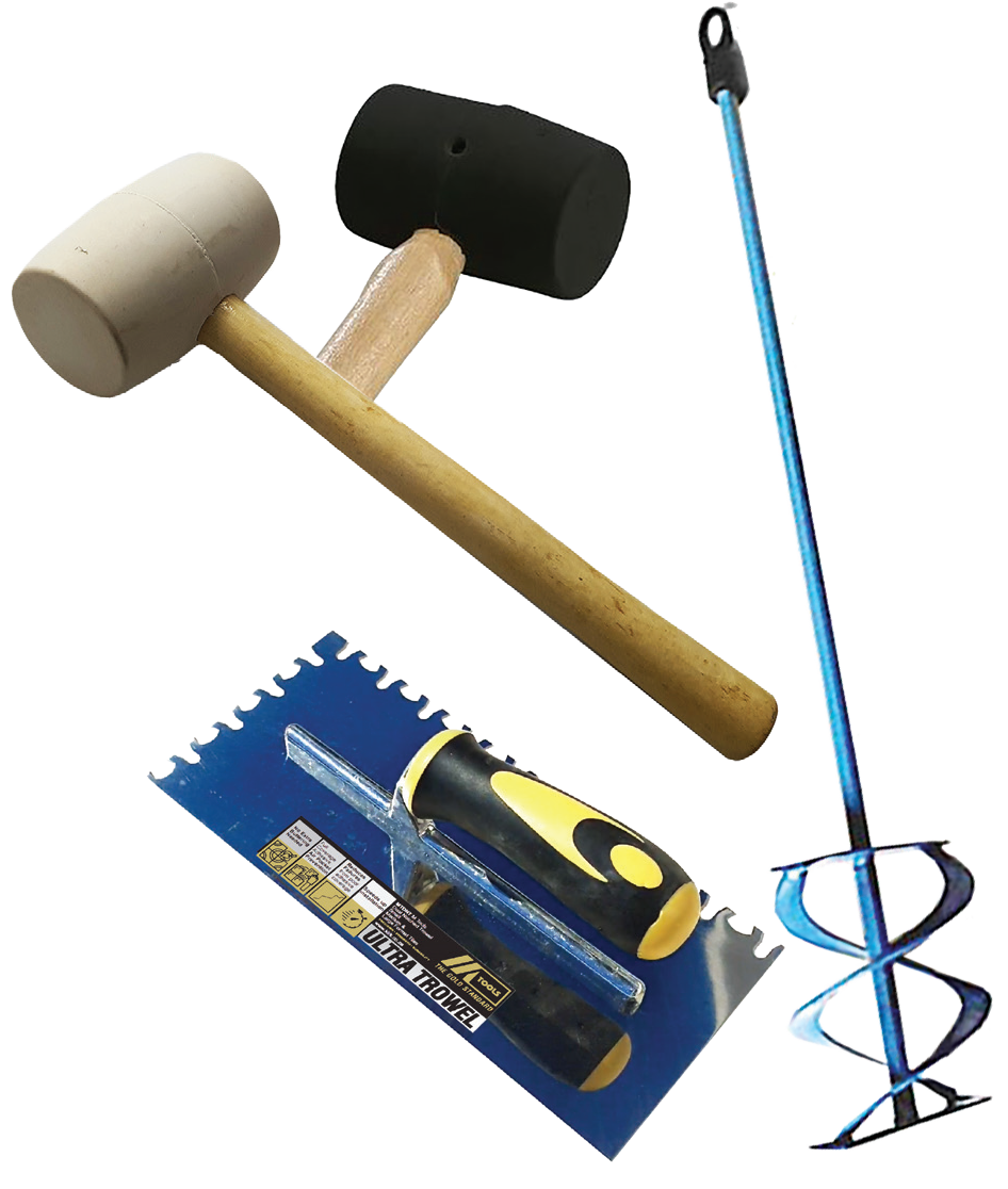 - Dual-Notched Trowels – Full adhesive coverage for any tile size.