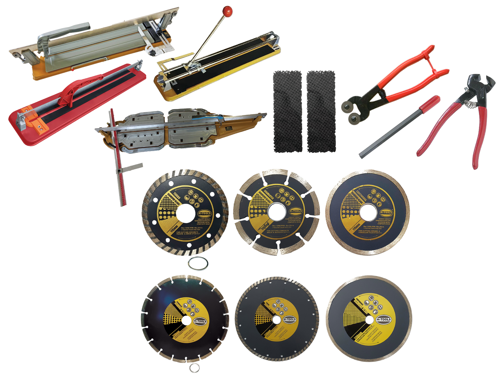 - Hand Tools – Tile Nippers, Scribers, Sanders, and Mosaic Cutters for custom tile shaping.