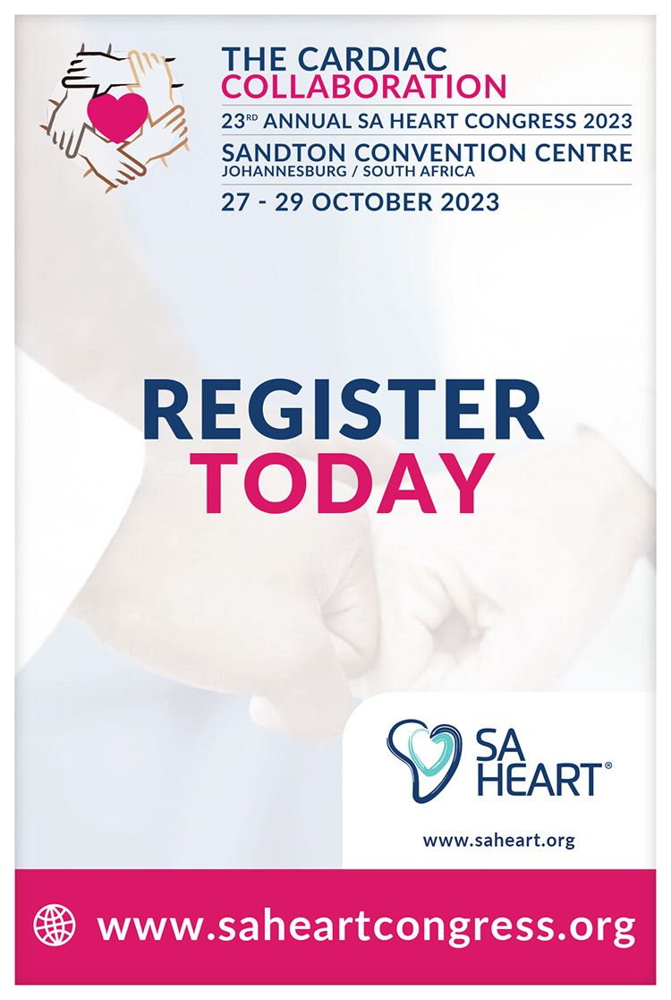 Don’t forget to book your seat for this year’s South African Heart Association Congress (27-29 October) in Johannesburg. For more information go to: https://saheartcongress.org/.