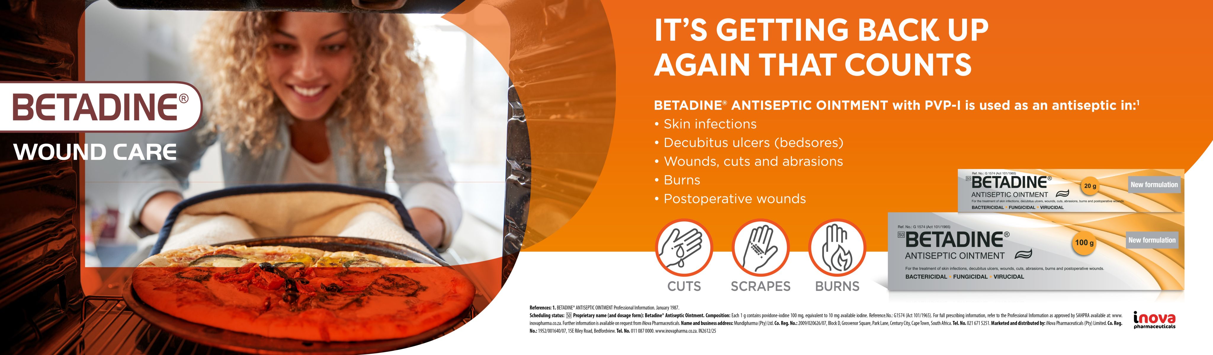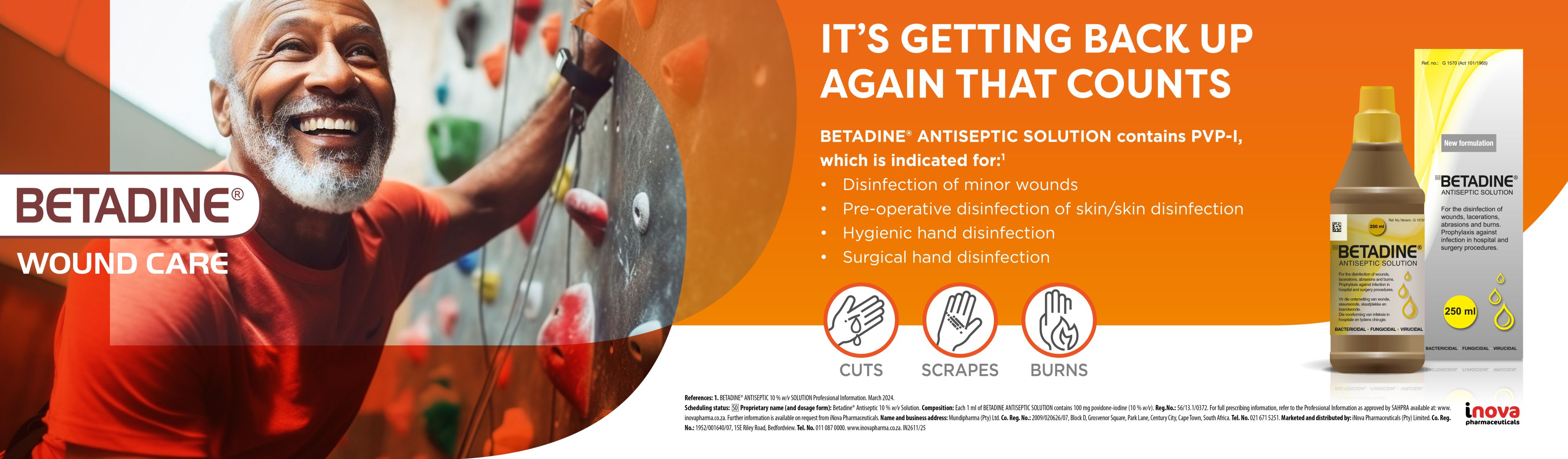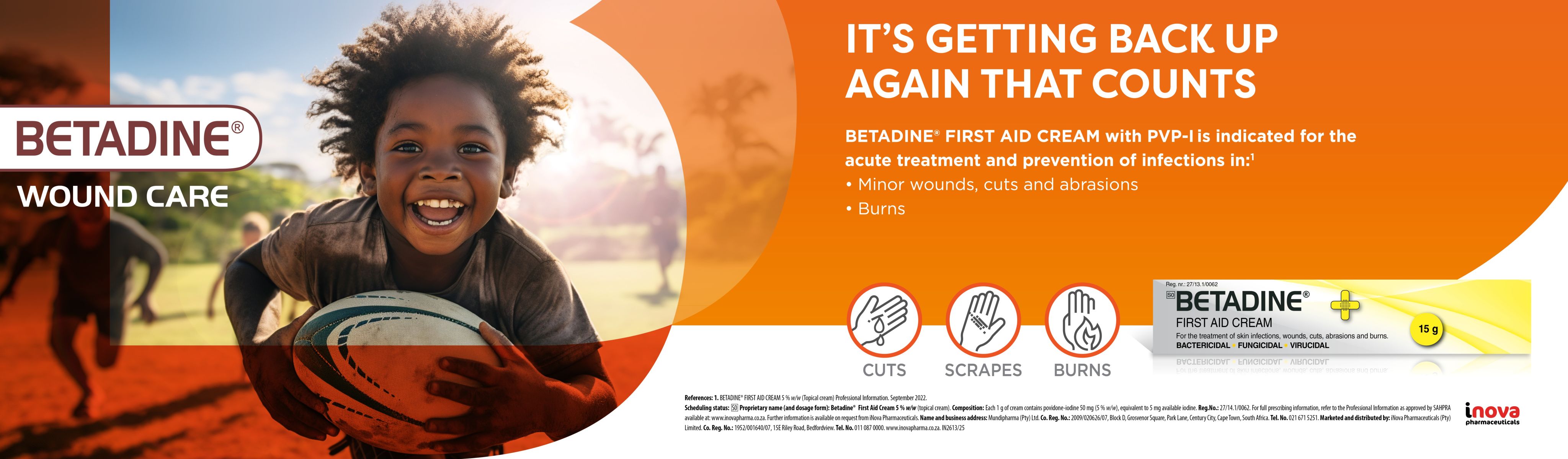 - Mundipharma (Pty) Ltd. Betadine First Aid Cream 5% (w/w) Povidone-Iodine Product Information. Cape Town, South Africa: Mundipharma (Pty) Ltd. September 2022. Accessed October 2025.
