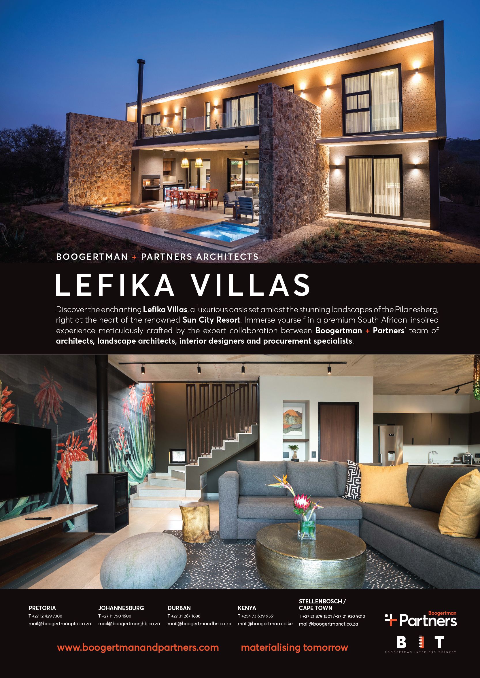 Lefika Villas is a new high-end luxury accommodation offering at Sun City in the Pilanesberg, consisting of 48 three-bedroom and 10 free-standing four-bedroom villas, all en-suite. The new luxury villas form the first phase of a larger development envisaged for the Sun Vacation Club and includes a clubhouse, new restaurants and other amenities.