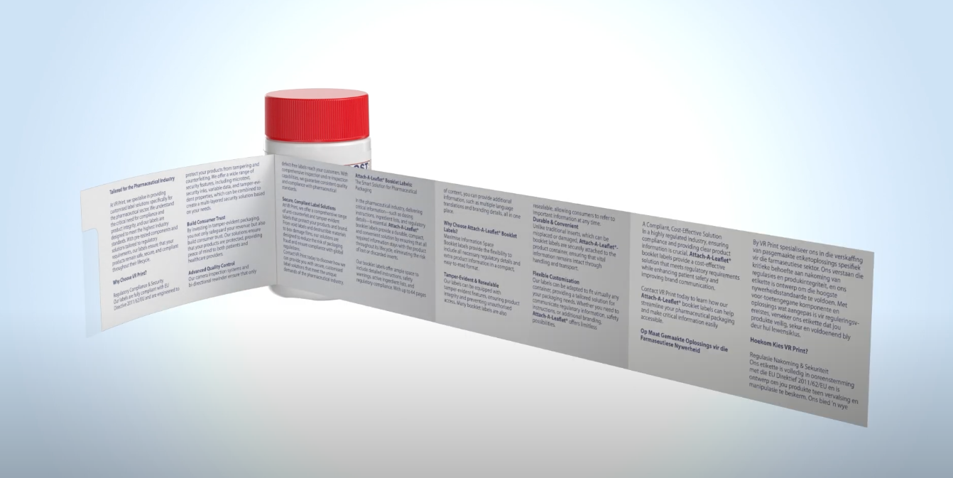 The flagship Attach-A-Leaflet® range showcases VR Print’s expertise. These innovative multi-page labels solve a common headache for brands needing to communicate extensive information on limited space. For beauty brands juggling multiple languages or promotional content, the Peel & Read labels offer an elegant solution. Meanwhile, pharmaceutical clients rely on VR Print’s Booklet Labels to deliver detailed regulatory and dosage information without compromising package aesthetics.